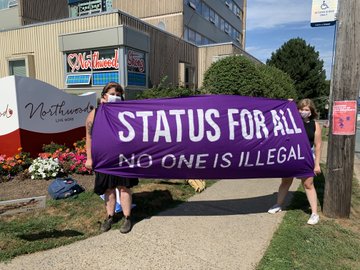 Four poster-actions took place across 8 locations on the Halifax peninsula yesterday & today for the cross-country Day of Action demanding permanent & full immigration status for ALL migrants! Without exceptions or exclusions!